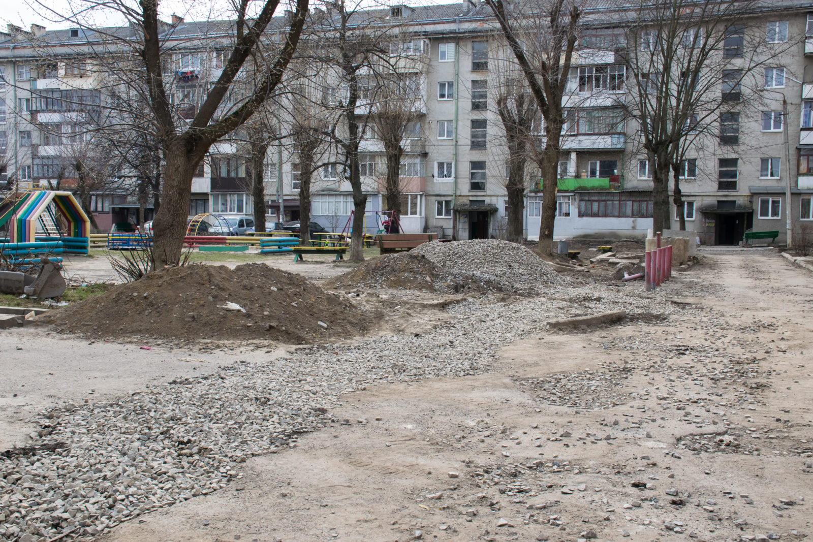 Волейбольний майданчик та тренажери: На Незалежності облаштовують двір