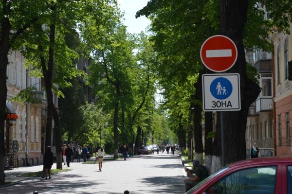 Незважаючи що на початку пішохідної зони стоїть знак і стовпчики які не дозволяють в'їзду, водії заїжджають з вулиць Крука і Сабата.