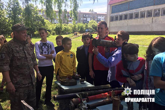 Уроки з вивчення дітьми військової підготовки з учнями старших класів провели працівники вибухотехнічної служби ГУНП в області. Дітям продемонстрували зразки озброєння та спецзасобів (міни, гранати, бронежилети, каски тощо) та роз'яснено правила поведінки у разі виявлення вибухонебезпечних предметів. Відтак показали як працює кінолог з службово-розшуковою собакою, яку правоохоронці залучають до розкриття злочинів при повідомленнях про замінування тих чи інших об'єктів, чи під час виявлення вибухових речовин.
