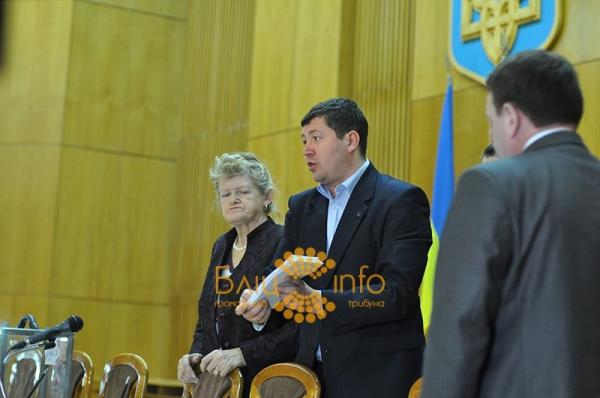 Опісля депутати перейшли у зал засідань ОДА і планують розглядати рішення про недовіру голові облдержадміністрації Василю Чуднову.
