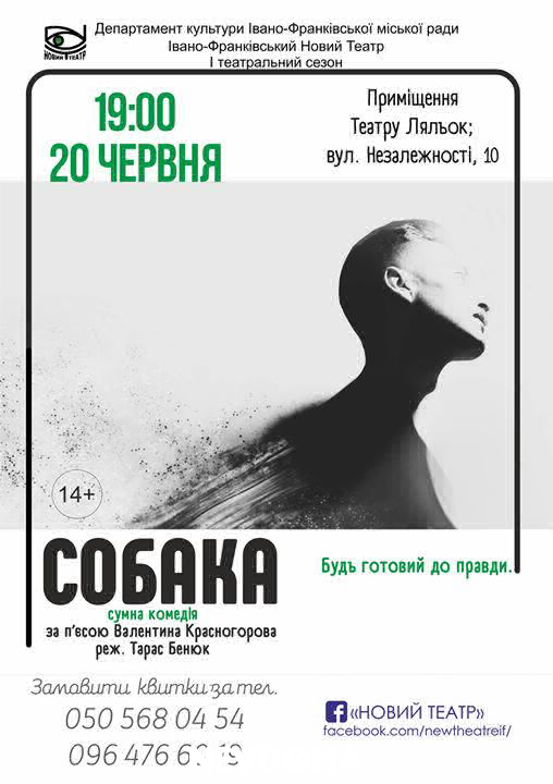 20 червня 19.00 год в Академічному обласному театрі ляльок, Незалежності 10 А розпочнеться вистава Нового театру "Собака".