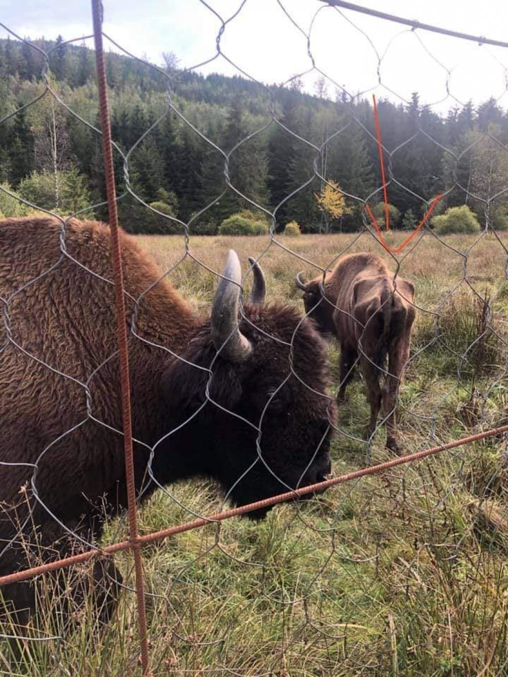 Прикарпатка розповіла, що побачила трьох зубрів: самець, самиця і малюк, якому 1 травня був рік. Всі тварини були надзвичайно худі і виснажені. Від місцевого жителя дізналась, що їх там було 11, зараз - 3.