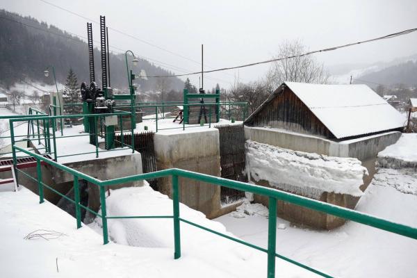 Яблунецька мала гідроелектростанція через низьку температуру зупинила свою роботу.