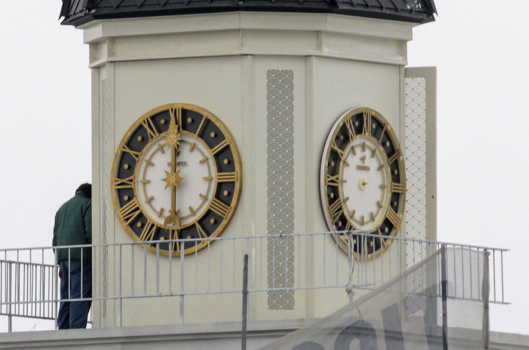 В Івано-Франківську триває реконструкція готелю "Дністер". Наразі майстри завершують відновлення годинникової вежі.