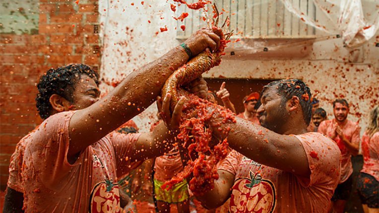 Понад 20 тис. людей з азартом жбурляли одне в одного стиглими помідорами. Все відбувалося просто на вулицях міста, які перетворилися на томатні ріки.