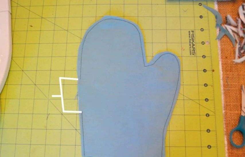 Для початку скачайте безкоштовну викрійку рукавиці для кухні з сайту MaryMarthaMama. Потім роздрукуйте її на аркуші паперу формату А4. Якщо ви роздрукували викрійку в правильному масштабі, то довжина рукавиці повинна бути 24 сантиметри.