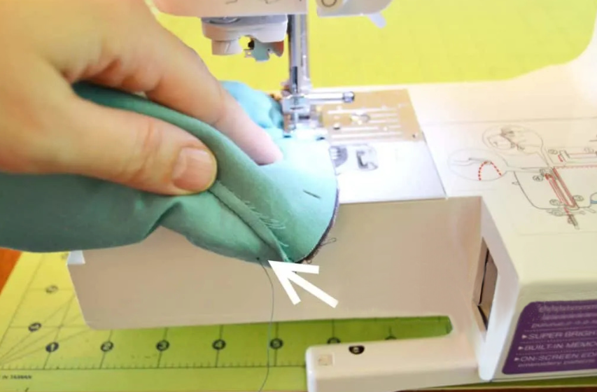 З'єднайте дві деталі підкладки лицьовими сторонами разом. Далі, використовуючи швейну машинку, зшийте заготовку, окрім отвору для руки. Шийте з припуском на шов 13 міліметра (½ дюйма). А ще залиште незашитим приблизно 5 сантиметрів з боку заготовки.