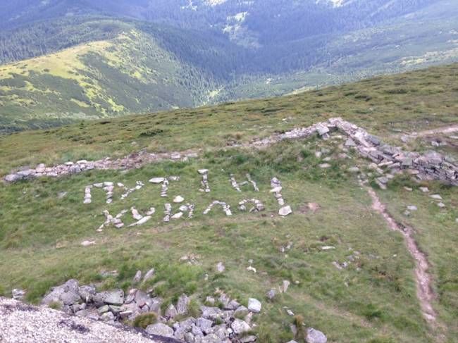 На одній із найвищих вершин Українських Карпат – горі Піп Іван також не забули про Путіна. Невідомі виклали із каміння надпис "Путін ху*ло".