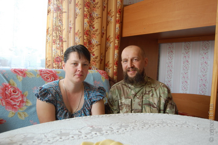 До хати, де живуть ці переселенці, з посмішкою спровадить кожен зустрічний. Їхнє обійстя розташувалося майже в кінці села, поруч із річкою і великим пасовищем. Про те, що приїхали куди треба, вказує автівка з російськими номерами та… наліпками «Правий сектор». На обійсті невеличка хата, на стежині дитяча коляска, поруч дерев’яна гойдалка і стіл із самоваром посередині. «Репортер» зустрічають усміхнені 36-річна Тетяна та її 44-річний чоловік Олег. Він у військовій формі. Нещодавно повернувся з АТО – з Пісків. З грудня минулого року він захищає Україну на Донбасі.