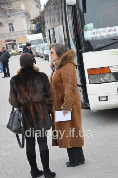 Біля будівлі облради стоїть автобус у який уже загрузили речі для захисту, та 60 літрів меду для мітингувальників на Майдані, повідомляє кореспондент «Діалогів».