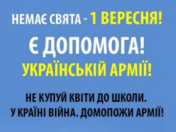Відтак, було прийняте рішення запропонувати батькам, вчителям і директорам шкіл на свято Першого дзвоника долучитися до всеукраїнської акції «Замість квітів – допомога армії». Тобто замість придбання школярами і їхніми батьками квітів вчителям вони можуть зібрати кошти на потреби української армії.