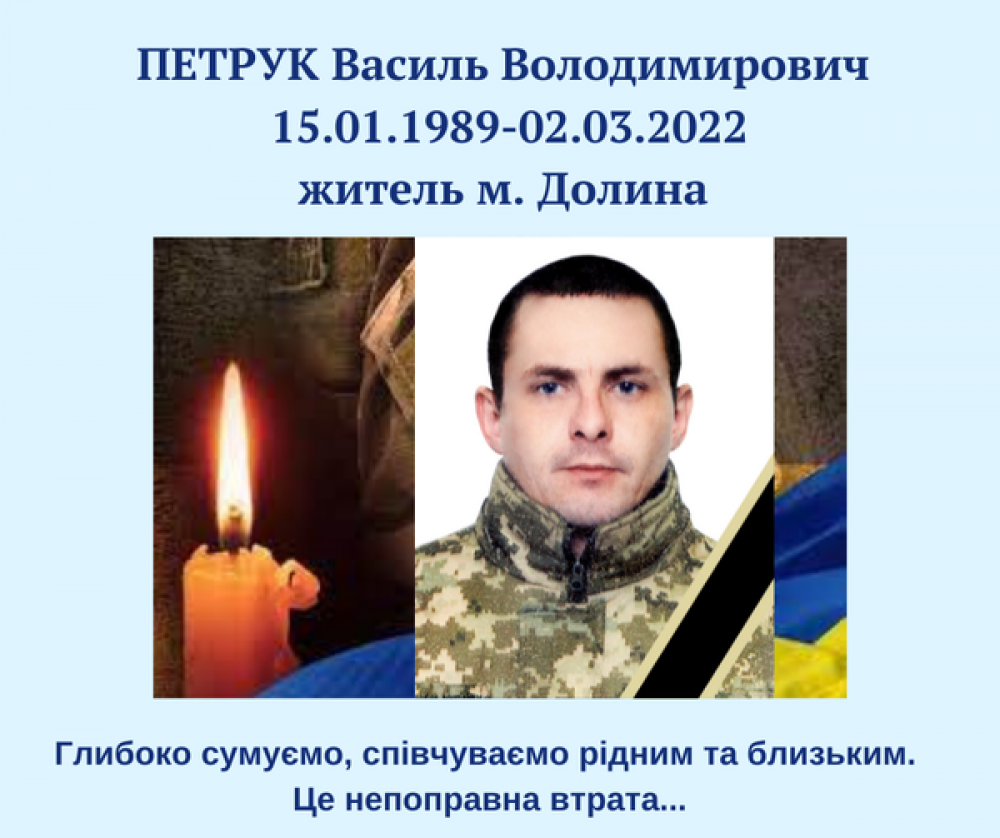 В четвер, 3 березня під час авіаудару на Житомирщині загинув воїн з Долини Василь Петрук.