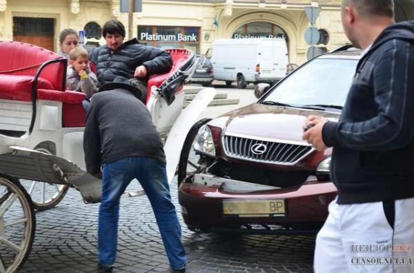Зіткнення століть: у Львові кінний візок розтрощив "Лексус" з номерами ВР