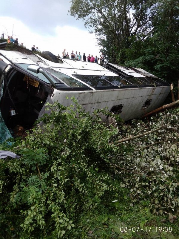 "Нас їхало 45 чоловік на море, сильна злива, автобус понесло і пару раз перекотило в обрив", - повідомляє пасажирка.