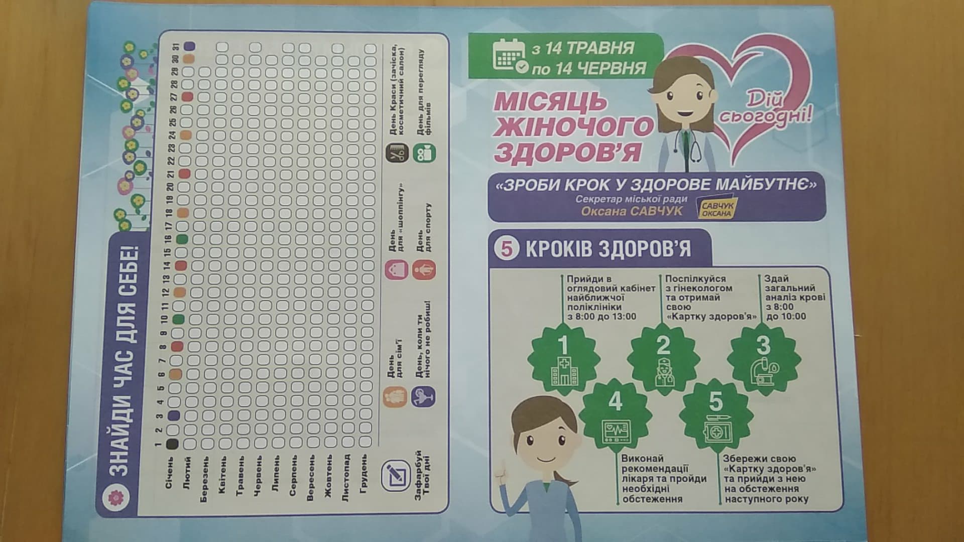 "Місяць травень це місяць коли все народжується і саме цього місця кожна жінка має подумати про своє здоров'я і не тільки тоді, коли щось турбує. Тож міська рада з управлінням охорони здоров'я готова запропонувати безкоштовний огляд для жінок у п'яти поліклініках, двох консультаціях та одному медичному центрі", - каже секретар міськради Оксана Савчук.