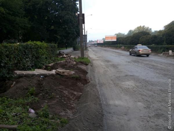 О 7:30 дорожньої техніки тут не було. Дорогу тут робили усі вихідні — і в суботу, і в неділю до пізнього вечора, пише Репортер.